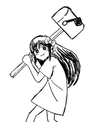 - AUBREY's battle sprite shows her wielding the MAILBOX weapon.