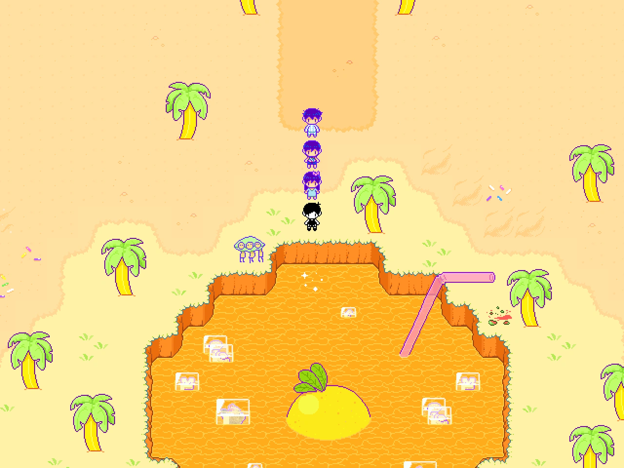 By looking deep into the water, OMORI is transported to a small area called Rain Town.