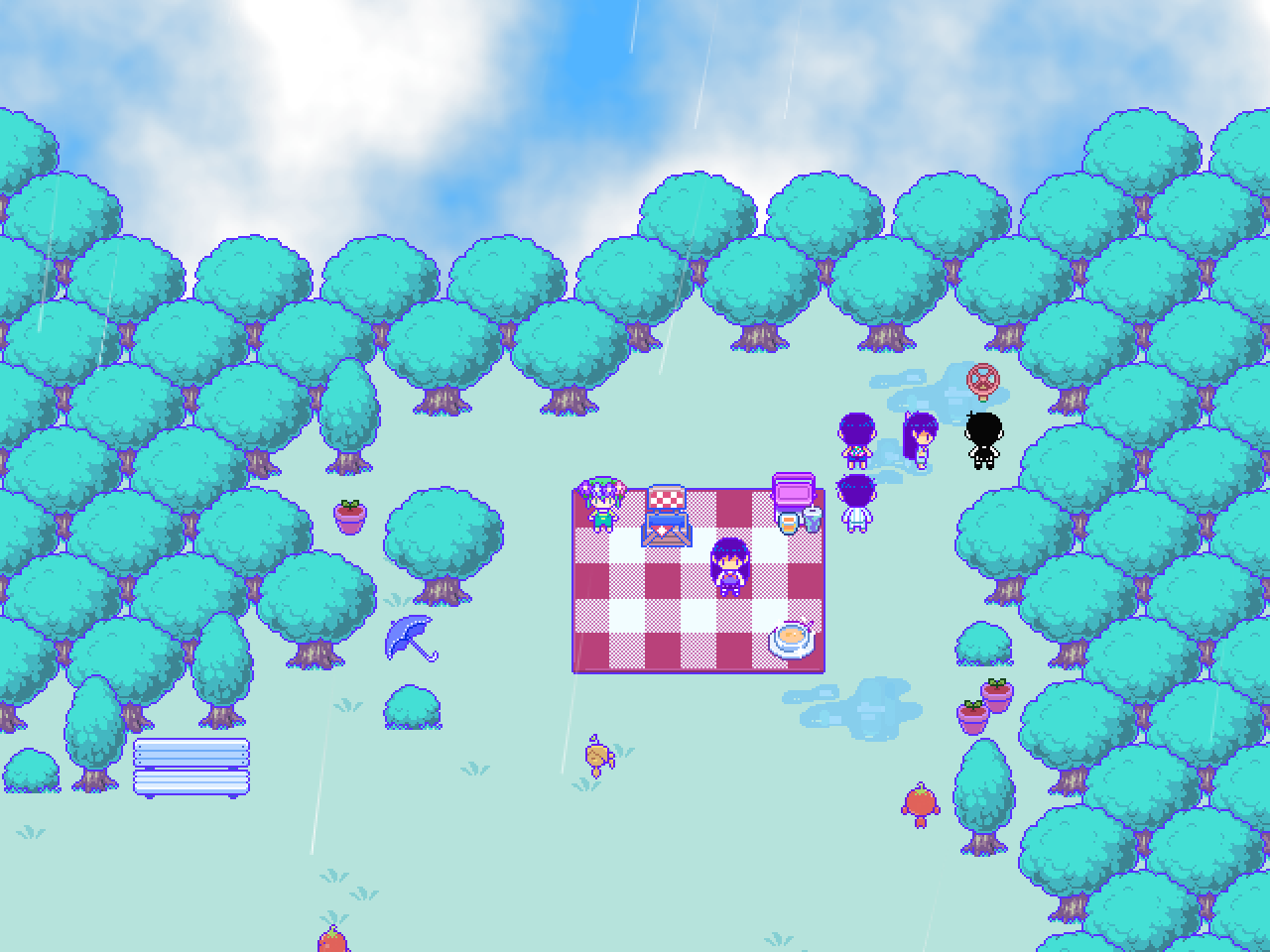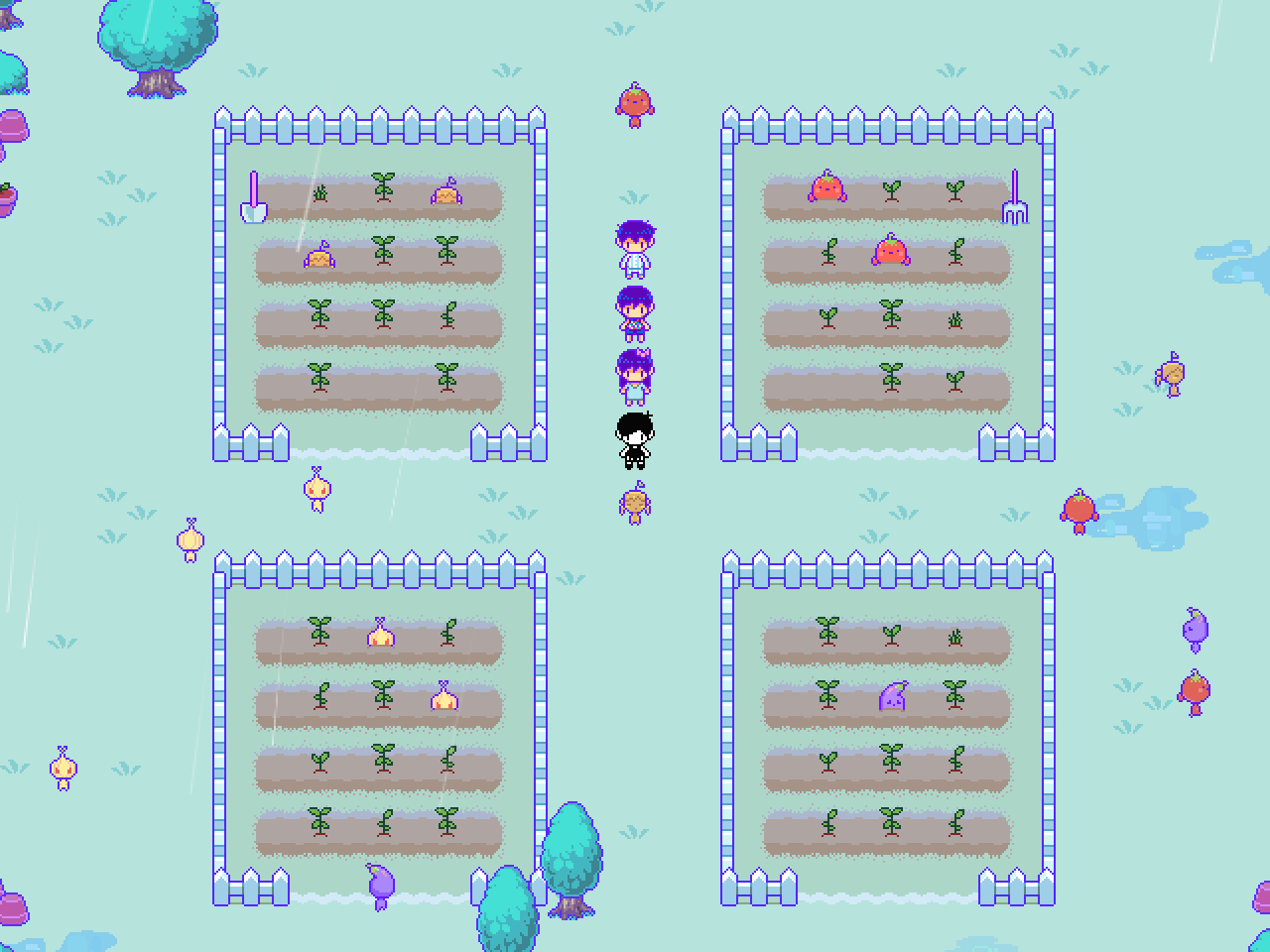 After saving RAIN TOWN, the party returns to the VEGGIE KID standing in the middle of the gardens. The residents of RAIN TOWN are grateful for OMORI's help and proclaim him to be the CHOSEN ONE from their legends.