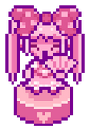 ROCOCO was found by a young DONUT by the name of SWEETHEART. She brought him to her family and they took him in as their own. He and SWEETHEART grew up together. The two fought frequently but SWEETHEART would always win. He became good at running and knew he had to survive to repopulate his species. Eventually, he and SWEETHEART fell in love, became engaged, and moved into SWEETHEART'S CASTLE. But, as SWEETHEART's fan base grew, the two grew apart. When she began searching for suitors, ROCOCO objected so, when he was asleep, SWEETHEART and her servants tied him up and sealed him inside the walls of her castle and he has been wandering through the walls ever since.