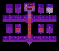 THE ROYAL LIBRARY is a large library featuring collections of books that SWEETHEART once read in the past. It is accessed by entering the lower aisle further left of the left hallway on the bottom floor (the entrance pointing north in that aisle). When the player first arrives here, there is a long line of SPROUT MOLES waiting to get their dress code checked by GUEST LIST MOLE. Completing this room is mandatory to progress.