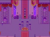 The BOOK charm can be obtained on the third floor's left ladder, and equipping it will allow the user to gain 50% more EXP in battle. Interacting with the strawberry cake that smells like a beet will warp the party to the CONGA ISLAND, a small room that allows the group to play out a conga line. Eating the cake again takes the party back to THE ROYAL LIBRARY. There is also a PEARL sitting in the middle of the staircase.